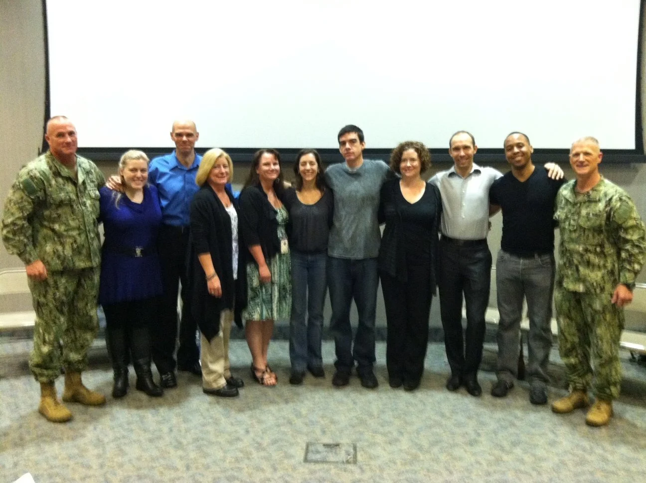 My friends KJ Sanchez and Emily Ackerman wrote this powerhouse of a play after interviewing family members and other servicemen and women about their experiences returning from deployment in Iraq and Afghanistan. It was an honor to join ReEntry when, after the DOD had brought the show to Marines here and abroad, the U.S. Navy decided to incorporate the play into its reintegration programming. We were honored to help facilitate intense conversations with service members after performances.